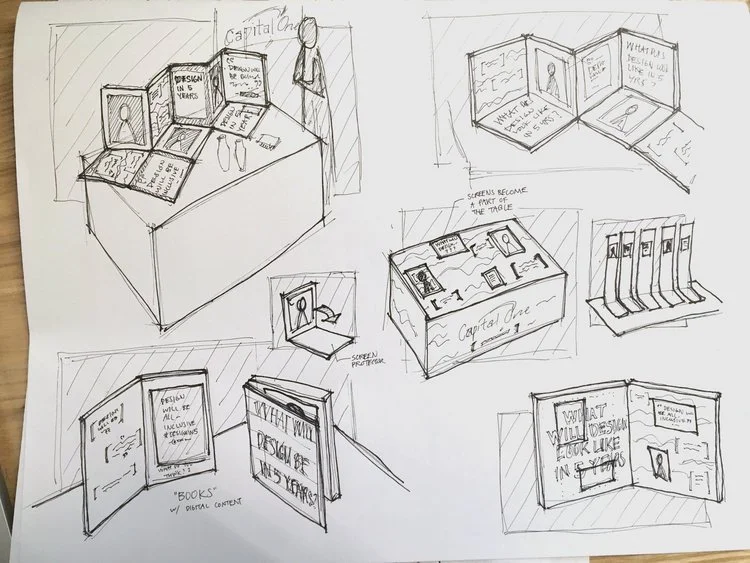 Embedded screens featured dynamic Capital One branding, Interviews with designers from the company, and high level descriptions of design roles intended to facilitate recruiting.